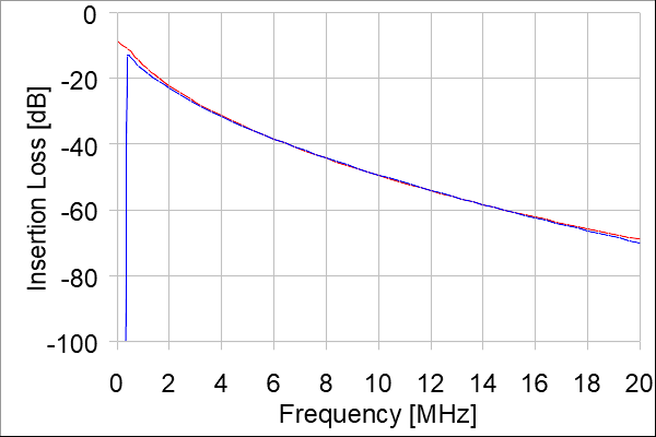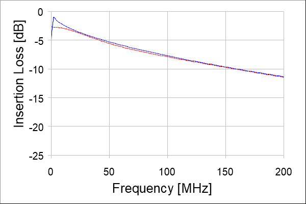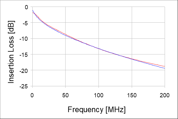 Insertion Loss The insertion loss, also called attenuation, is the amount of signal loss by the insertion of the cable between the signal's source and the device under test. Doubling the length results in about twice the insertion loss. |