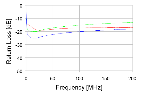 Click on any of the Graphs to get a larger View. The graphs assume a source impedance of 100 ohms. Connecting a device with a different impedance will affect the curve, as is the case with actual cable. |